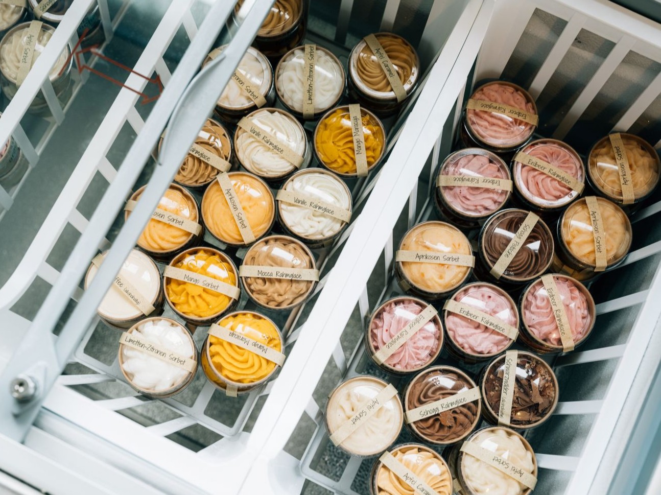 Angebot ✲ Das feine Standard-Sortiment bestehend aus je fünf Rahmklassiker und Sorbets mit hohem Fruchtanteil wird durch Spezialaromen mit Alkohol und saisonalen Doppelaromen ergänzt. Die Glace sind individuell nach Wünschen zusammenstellbar und mit einer Kühltruhe erhältlich.